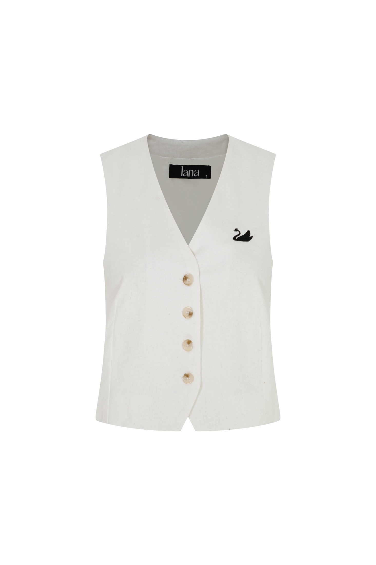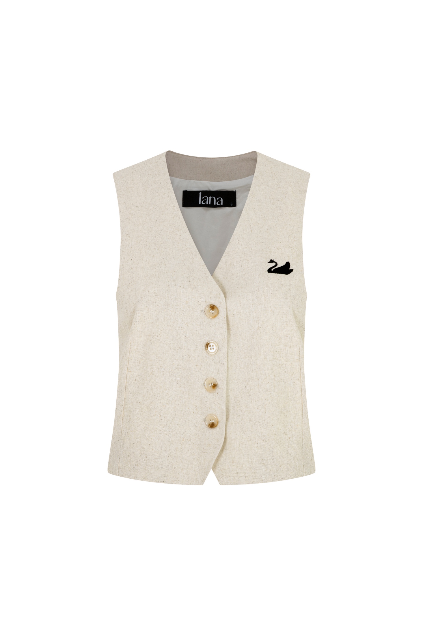 *Thông tin sản phẩm: Áo gile linen dáng crop, sọc xanh trendy mùa hè, may 2 lớp dày dặn. Có dây điều chỉnh eo phía sau.
