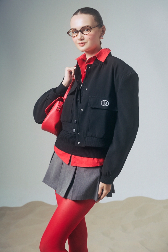 Áo khoác croptop Bomber độn vai, thêu logo Lana, cúc bấm. Áo được may 2 lớp dày dặn, đứng form, dáng croptop trẻ trung.