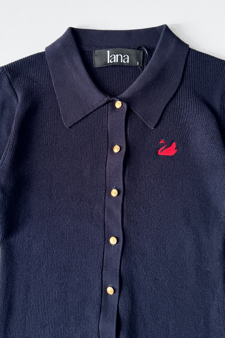 Đầm len xanh đen dệt kim cổ polo dáng dài tôn dáng. Chất len dày, nặng tay, giặt tay để tránh nhanh dão.