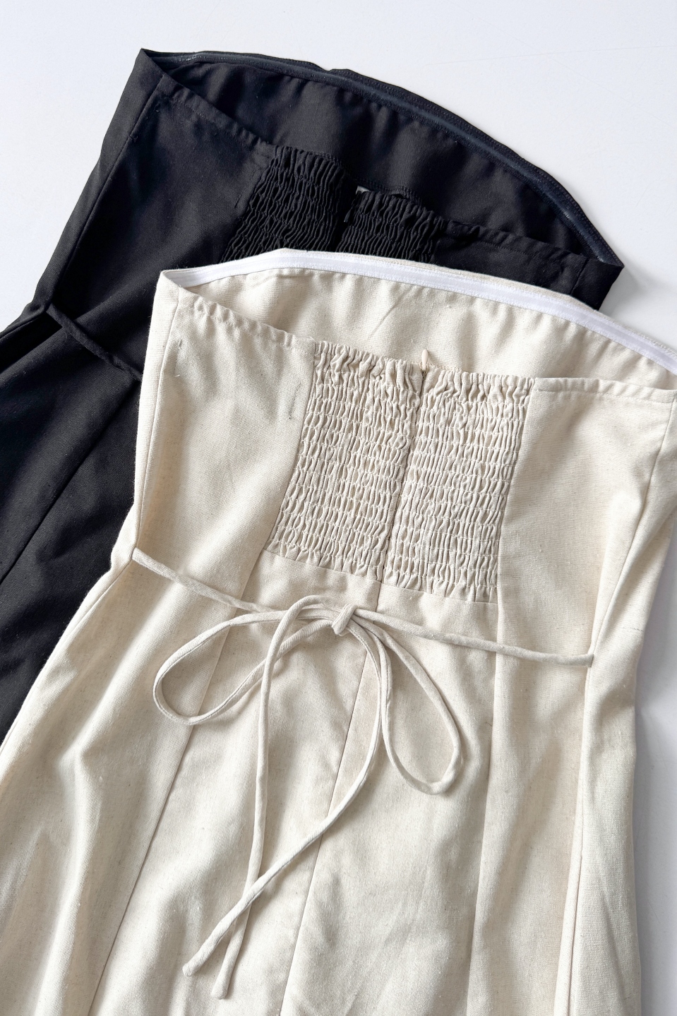 Đầm linen premium cúp ngực dáng xòe nhẹ, có dây thắt eo tôn dáng, mặc được 2 kiểu thắt dây siết eo và không siết. Lưng bo chun, đầm may kĩ, kèm dây keo giữ ngực.