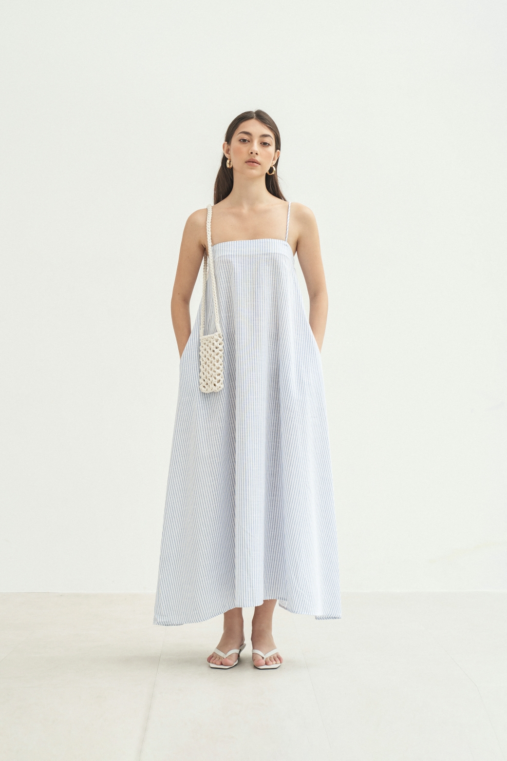 Đầm Linen 2 dây dáng dài nhẹ nhàng, bay bổng & thanh lịch giúp che khuyết điểm tối đa phần dưới cơ thể.
