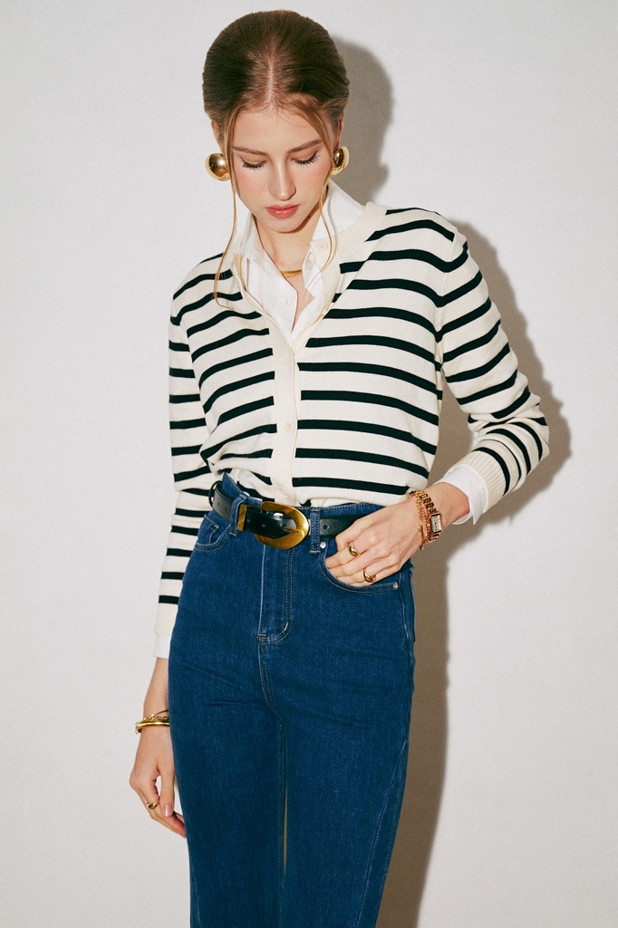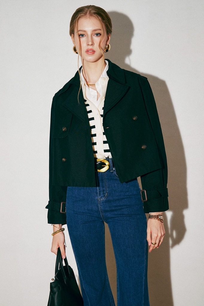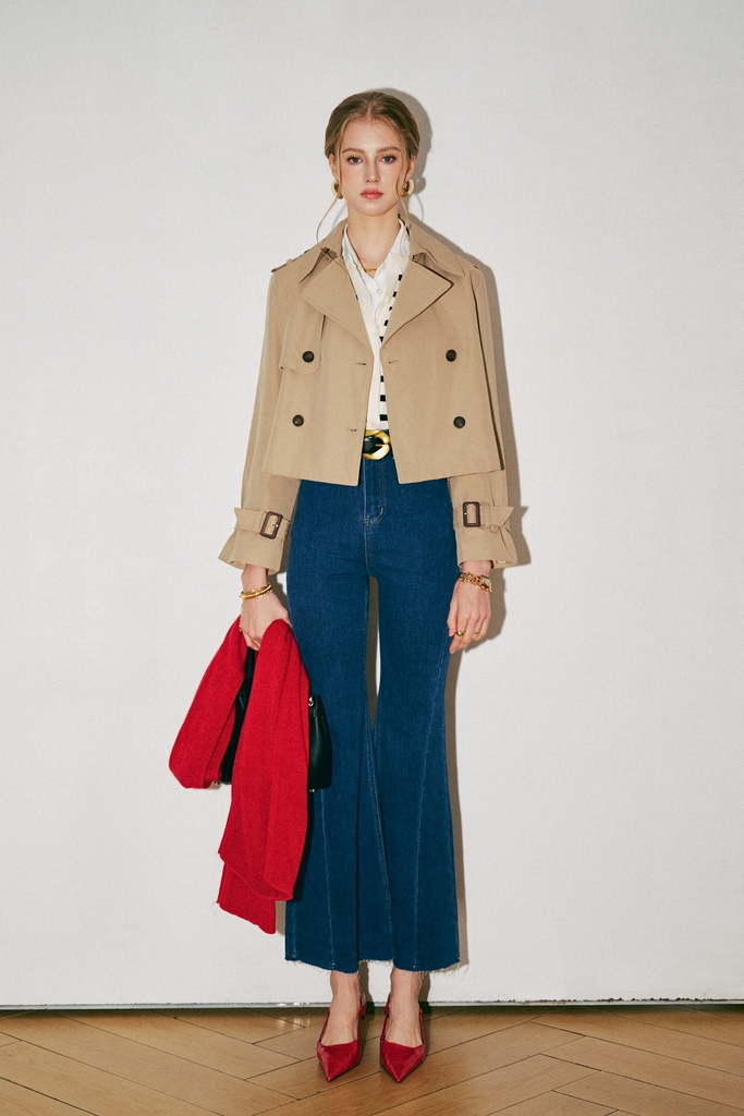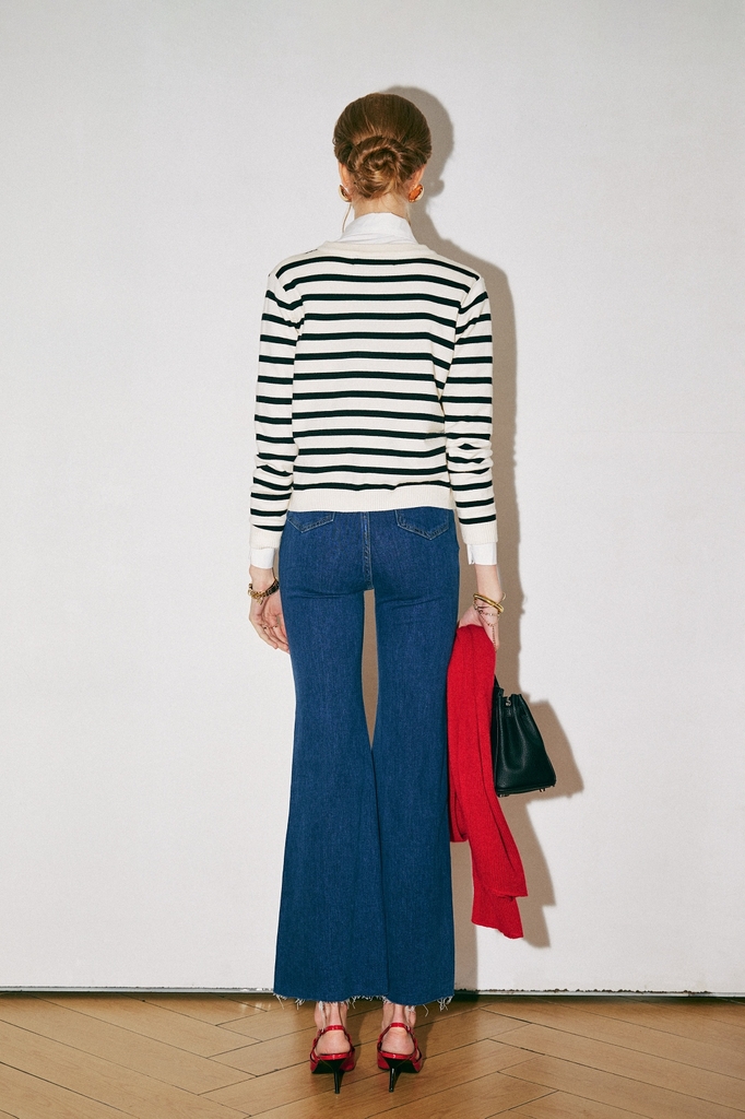 Quần jeans xanh đậm ống loe dài cạp cao siêu hack dáng, Chất jeans dày dặn co giãn tốt, ôm sát. Ống quần chiết tạo form loe tỉ mỉ & tinh tế.