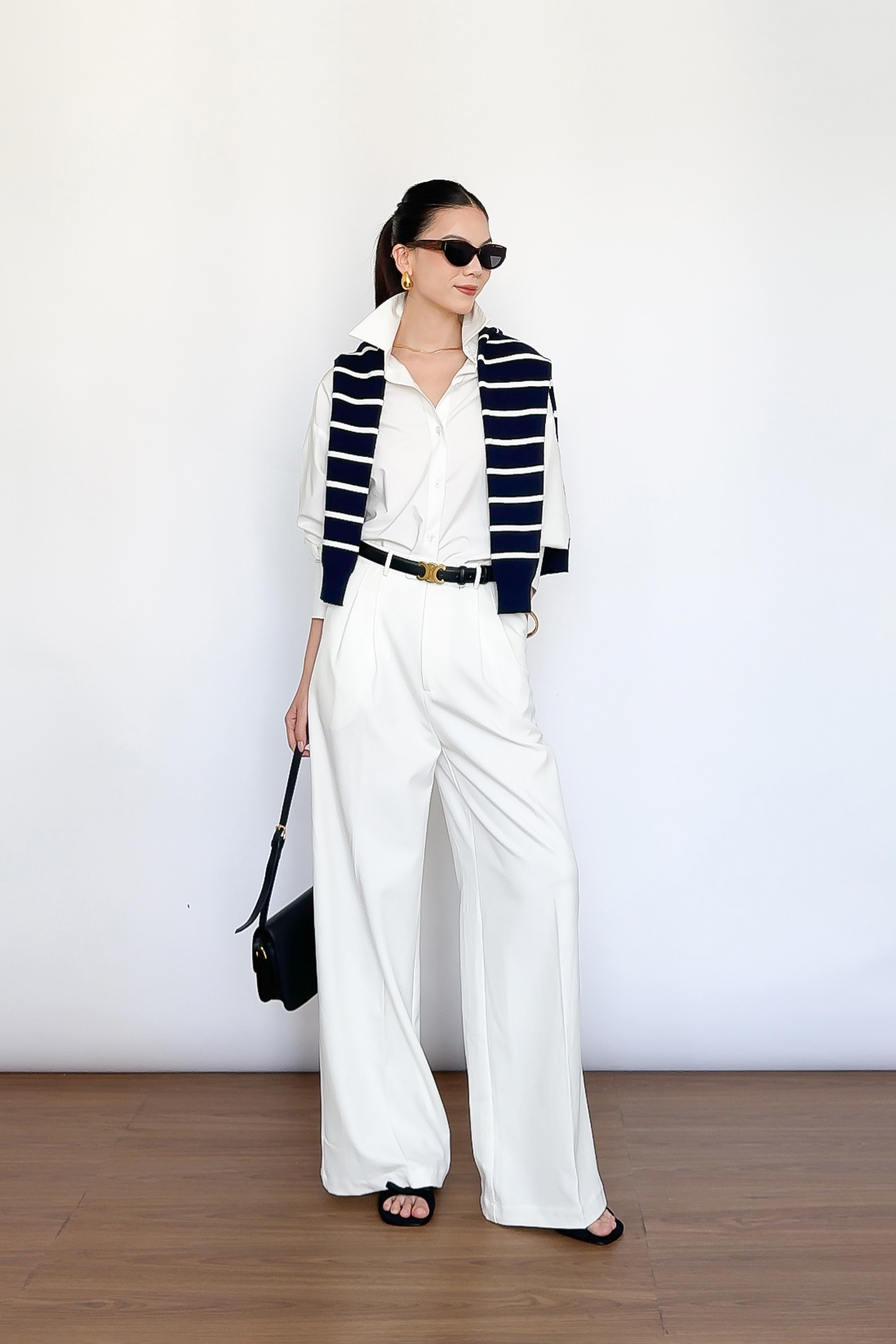 Chất liệu cotton bố cao cấp dày dặn, không lộ. Dáng rộng vừa phải, tôn dáng.